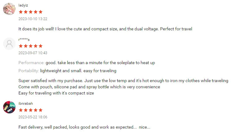 【Mini Size & Extreme Lightweight】Take a load off with this Micro Iron! Dimensions: 6" X 3" X 1.3", Weight: 0.95 lbs. Small and lightweight enough to fit in any suitcase or travel bag. The heavy-duty technology inside this lightweight iron delivers fast, wrinkle-free results. Perfect for business trips and vacations, making travel more sophisticated and stylish.